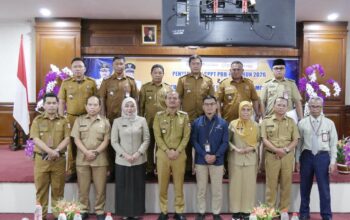 KOREKSI.co Tanjungbalai, Walikota Tanjungbalai, Mahyaruddin Salim, didampingi Asisten Administrasi dan Umum Walman Riadi P Girsang, Kadis Koperasi, UKM dan Tenaga Kerja Agus Salim dan Kadis Sosial Zul Abdiman menerima audiensi dari BPJS Ketenagakerjaan Cabang Kisaran, di ruang kerjanya, Senin (13/4/2026).