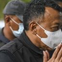 Sugiri terlihat turun dari mobil hitam bersama beberapa orang lainnya. Ia mengenakan pakaian serba hitam dan masker putih saat digiring petugas menuju ruang pemeriksaan.