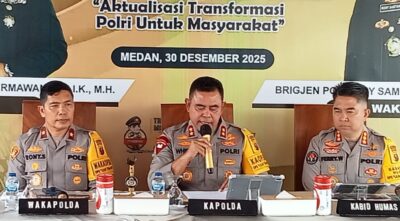 “Hajar terus peredaran narkoba di Jalan Jermal XV, hajar terus. Bila perlu, tembak saja gembong narkoba yang membandel dan melawan,” tegas Kapolda Sumut saat rilis akhir tahun 2025 di Mapolda Sumut, Selasa (30/12/2025).
