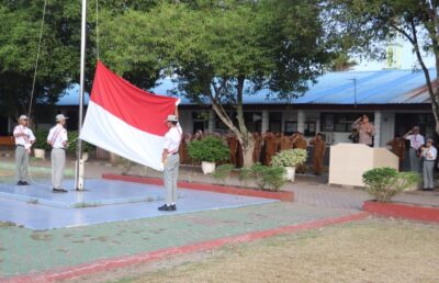 Upacara berlangsung dengan tertib dan khidmat, diawali dengan laporan, pengibaran bendera Merah Putih, serta pembacaan UUD 1945.