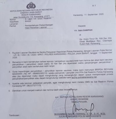 Kasus itu telah dilaporkan ke Polres Karawang dengan nomor : B /1427/IX/2025/Reskrim tertanggal 11 September 2025 lalu.