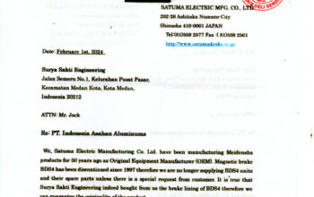 Selain itu, GM Pengadaan Barang PT Inalum juga telah menerbitkan PO shoe brake Meidensha ke vendor binaan yang selama ini menyuplai barang. Sementara, PO dari Desember 2024 hingga Januari 2025, diduga ada 64 unit barang shoe brake yang palsu sesuai surat Satuma OEM Meidensha yang telah ada Surat Terjemahan Tersumpah ke bahasa Indonesia, masuk status OK ke gudang Inalum.