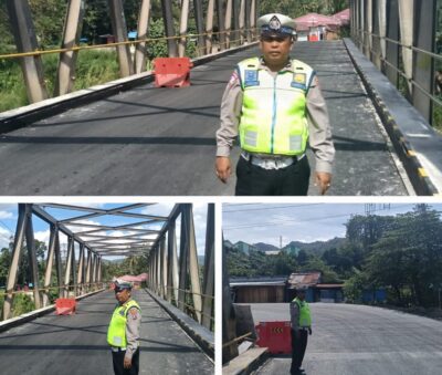 Untuk memastikan kelancaran dan keamanan arus lalulintas, pihak kepolisian melakukan patroli serta pengaturan arus di sekitar lokasi jembatan.
