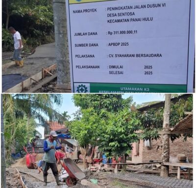 Proyek yang berlokasi di Dusun 6 Raja Melawan, Desa Teluk Sentosa, Kecamatan Panai Hulu, Kabupaten Labuhanbatu, Sumatera Utara itu, diduga sarat kejanggalan dan berpotensi merugikan keuangan daerah.