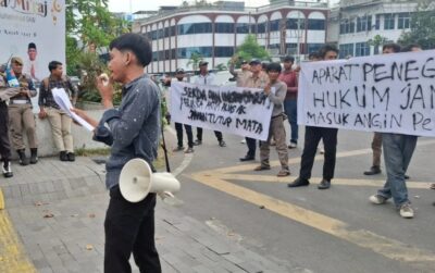 Dalam aksinya, massa mengungkap dugaan pungli di balik tunggakan pajak usaha reklame di Bapenda Kota Medan.