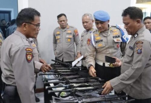 Pemeriksaan yang berlangsung di aula Pesat Gatra itu meliputi pengecekan fisik senjata laras pendek dan laras panjang, kelengkapan administrasi surat izin pemegang senpi, hingga kondisi kebersihan serta kelayakan operasional.
