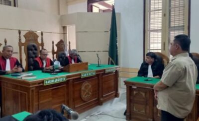 Sidang putusan dipimpin oleh majelis hakim diketuai Cipto Nababan, bersama dua hakim lainnya di ruang Cakra 5 Pengadilan Negeri(PN) Medan, Kamis (05/3/2026).