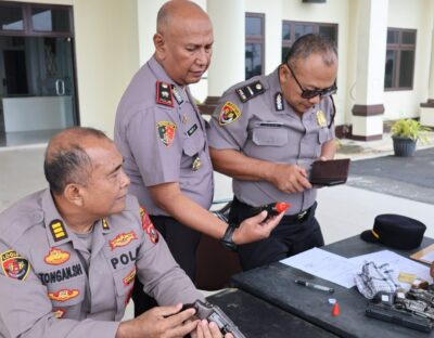 Kegiatan tersebut mencakup pemeriksaan kondisi fisik senpi, kebersihan, serta kelengkapan administrasi berupa Surat Izin Pinjam Pakai Senjata Api (SIPPSA) untuk memastikan dokumen masih aktif.